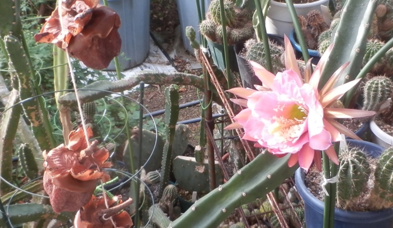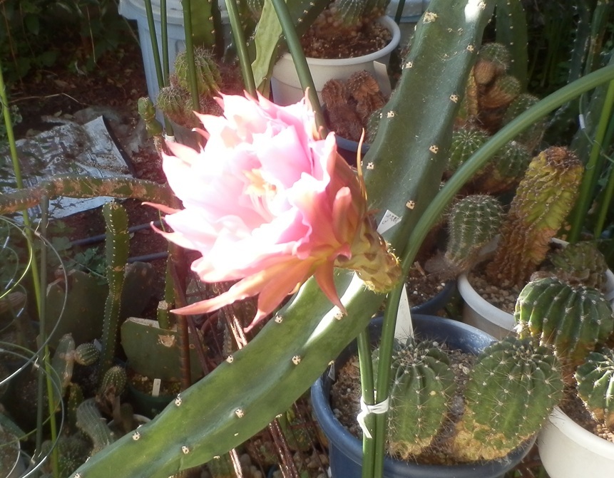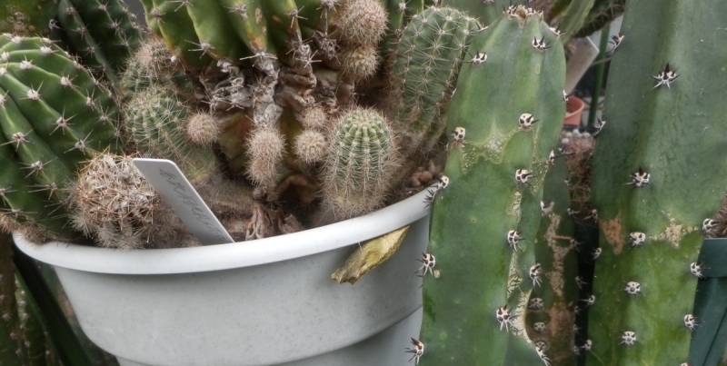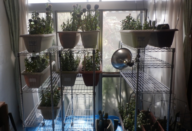 添付写真は、取り込みを終えた、今年のキリンウチワ台木とウチワサボテン台木の実生置き接ぎです。