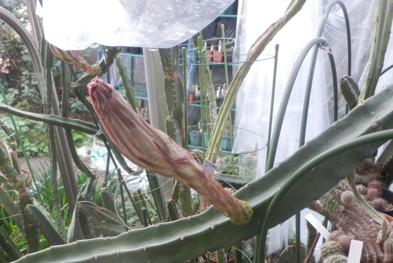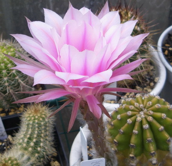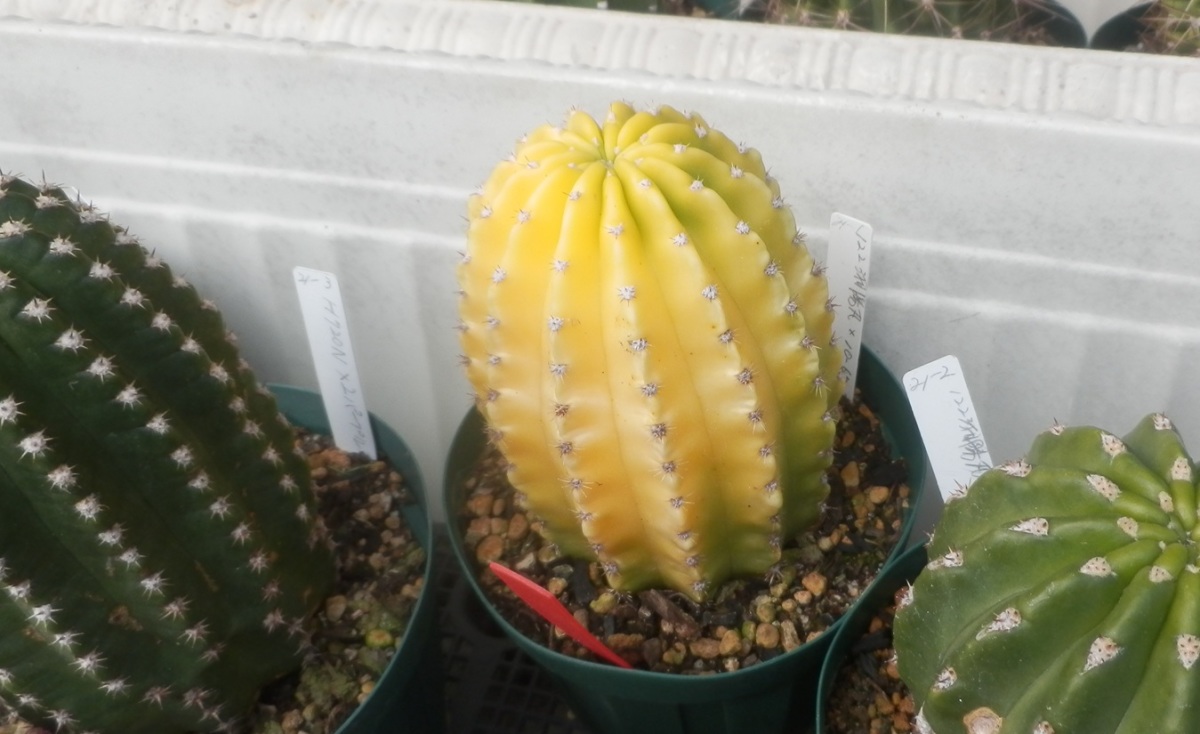 残念ながらふじやまさんの10-67-2の交配式は存じませんが、形態はうす紫紅色に濃い紫紅色のストライプが入る美花の短刺種です。