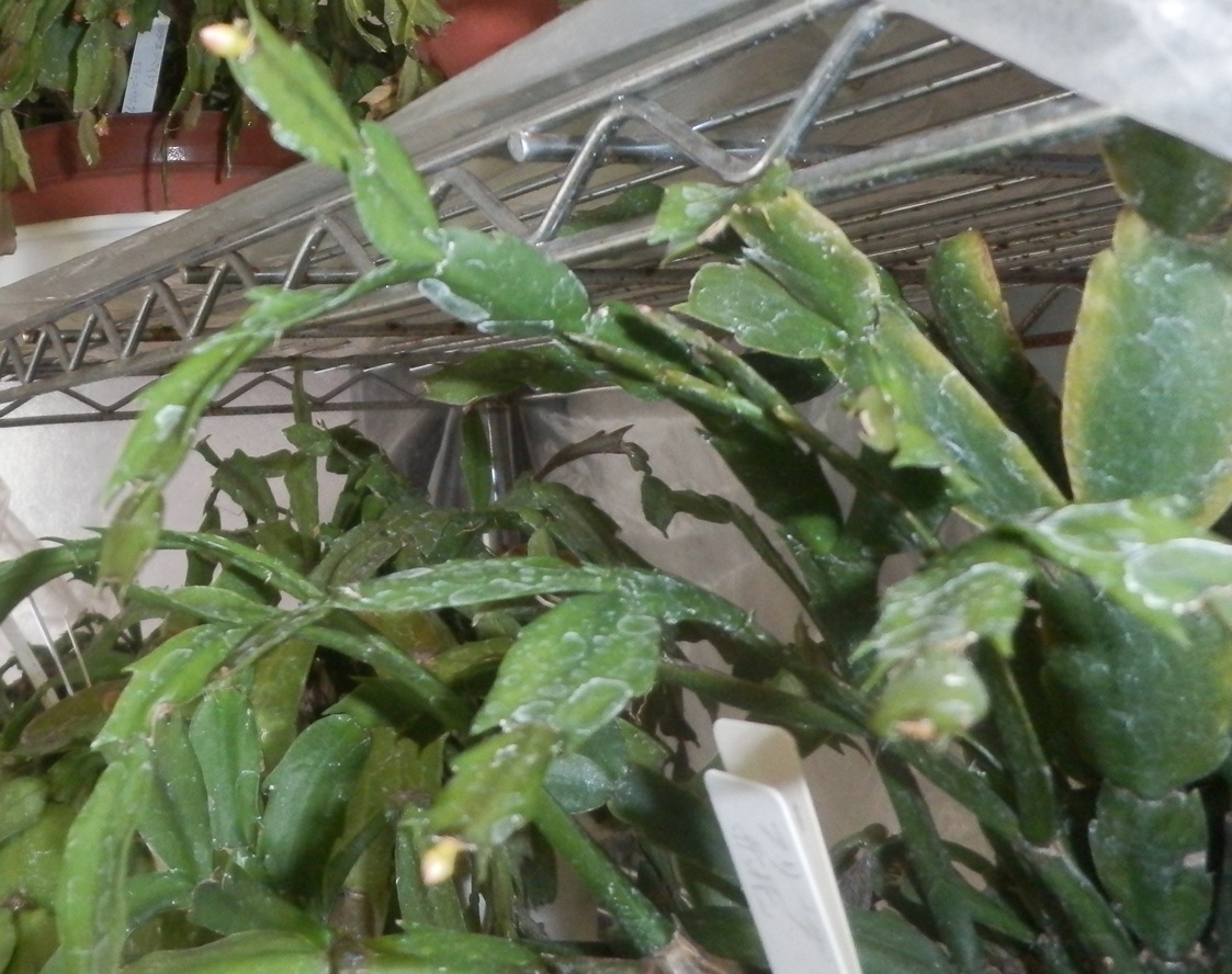 玄関に取り込んでいたシャコバサボテンですが、今年は夏のダメージが大きく、開花は全く期待できず、何とか生き残ってくれれば…と思って毎日発根剤や活力剤などの霧吹きをしていましたが、3株だけ少しだけですが花芽が付きました。