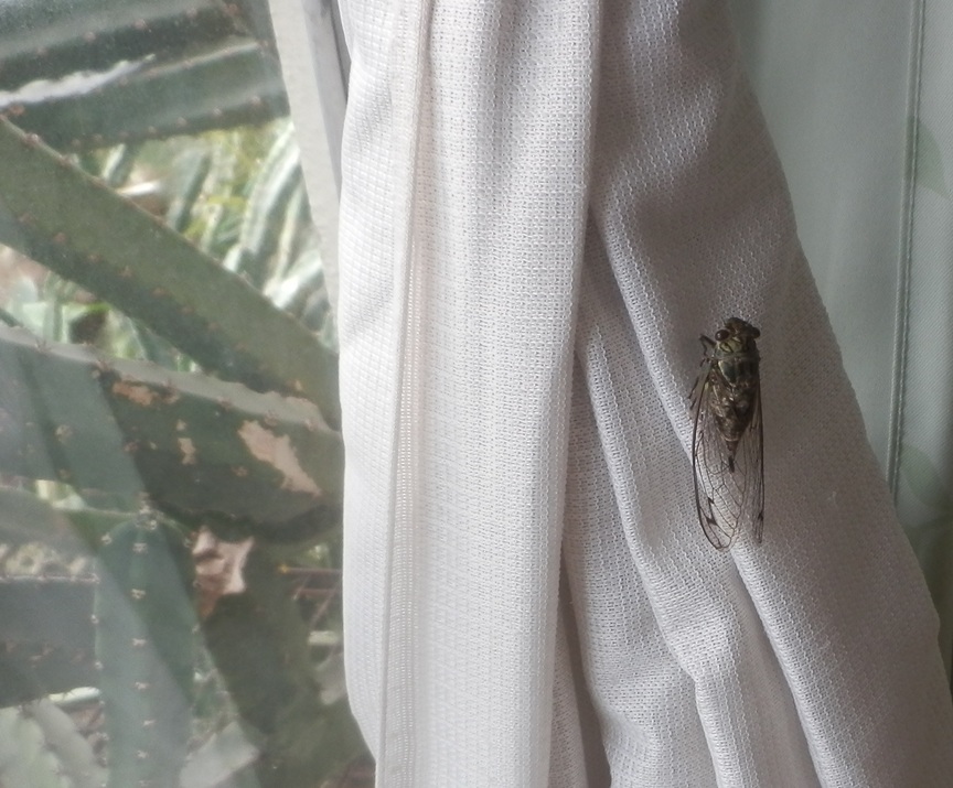 たぶんツクツクホウシのメス、せみの中では遅くまでいますが、この時期見るのは初めてです。