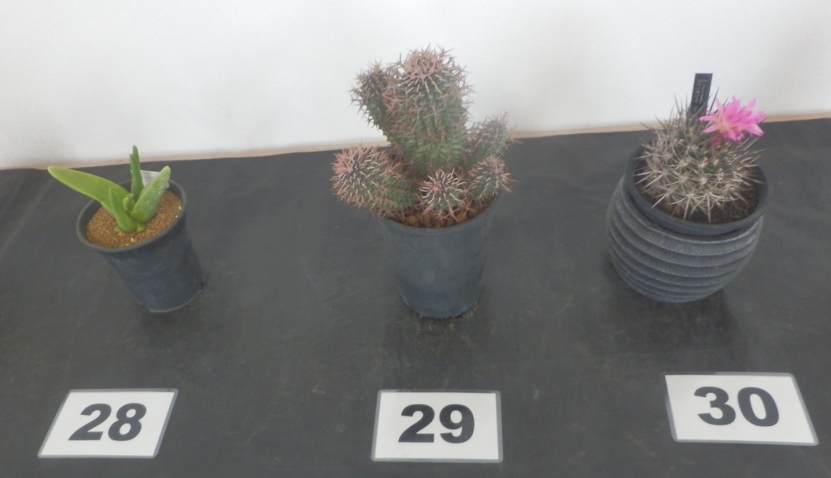今月のミニテンのお題は「小鉢のサボテン・多肉植物」で出展は36作品。
