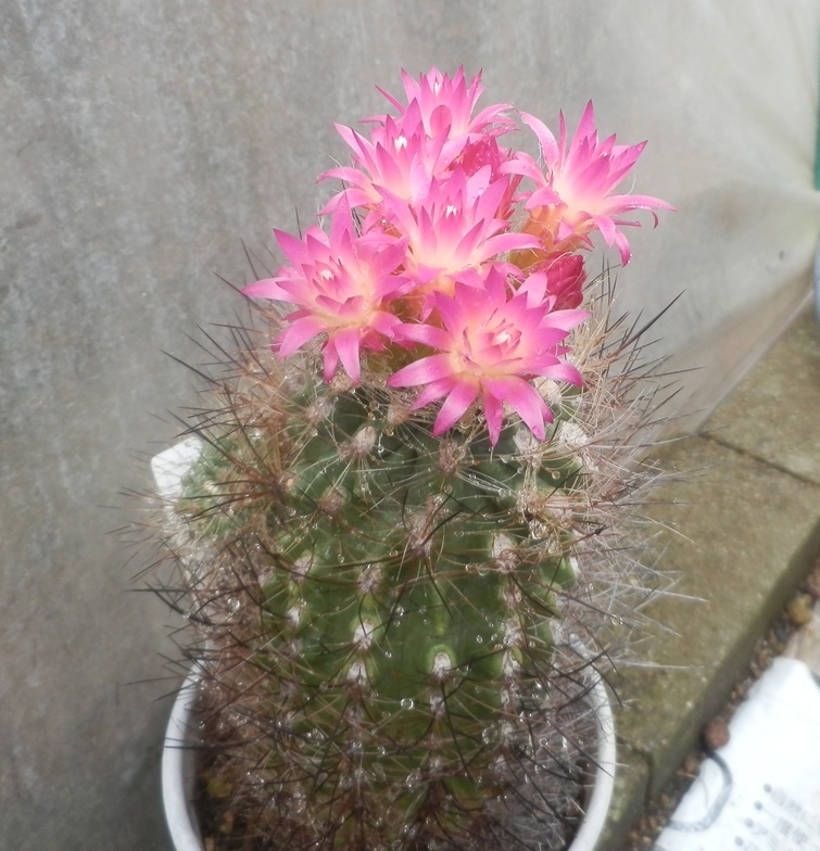 添付写真は、我が家の早春を彩る旧ネオポルテリアの銀翁玉です。