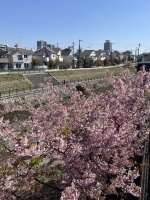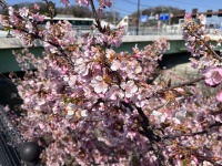 「宝蔵橋のたもとで河津桜が満開だ」と