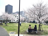 駅近くで1番の桜の見どころはスクエアの横、せいせきC館の前