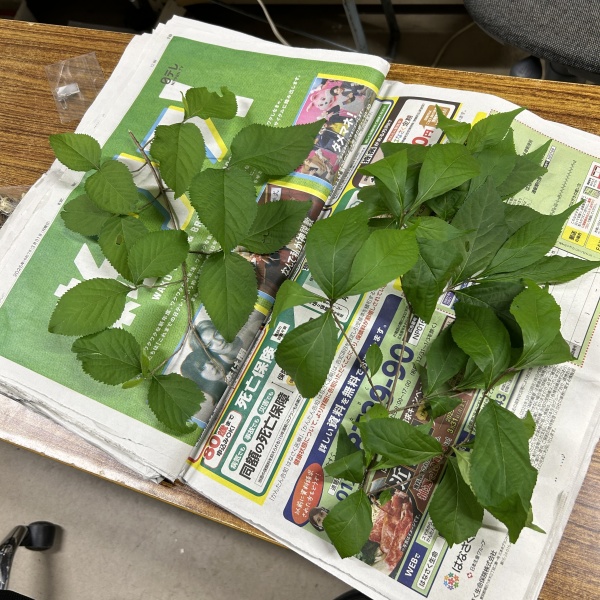 一方1枚目写真の葉は、左端の枝に付く6枚の葉が十字対生しているように見え、写真4と同様透過光下の写真での葉脈の見え方の違いが明らかです。両者の写真をじっくり見比べてみてください。