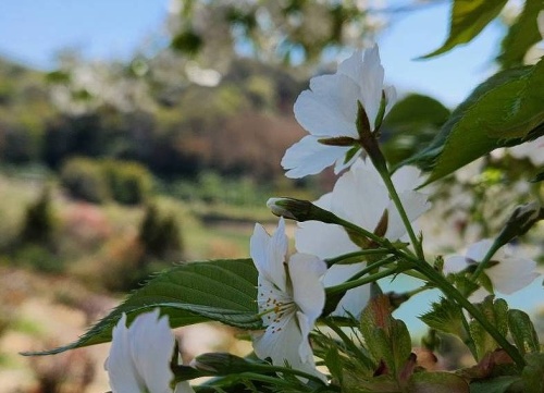 園地はサクラの名所ですが、このサクラは園地の大部分を占めるソメイヨシノとはかなり違った印象を受けます。