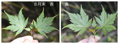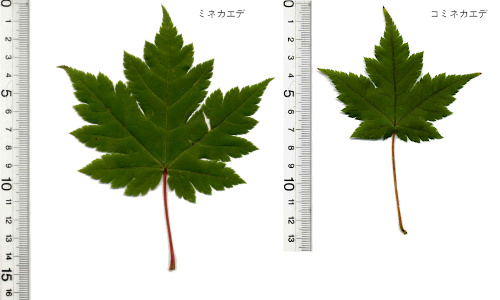私もやはり岡山県と鳥取県の県境で標高700m〜1000m付近で、コミネカエデにしては、基部の裂片がやや長く、切れ込みの深い葉を見たことがあります。