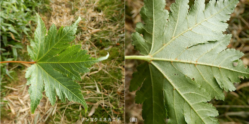 前年に四国でナンゴクミネカエデを見る機会があったのですが、徳島県の剣山、愛媛県の石鎚山、四国のナンゴクミネカエデ自生地は概ね標高1500m以上で、ウラジロモミやシラビソ(シコクシラベ)など針葉樹と落葉樹が混じる亜高山の環境でした。