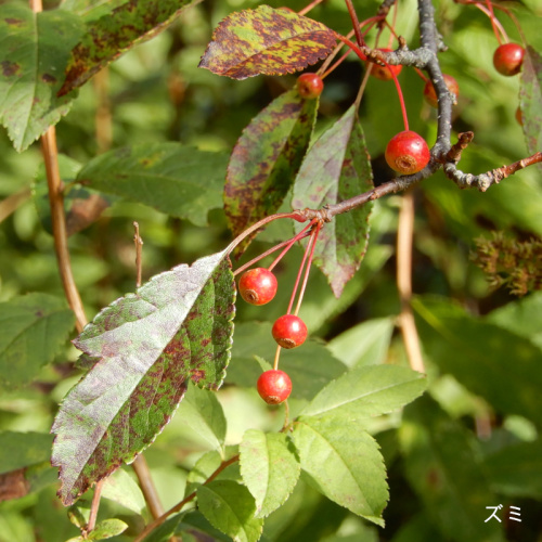 なお、果実が黄色いものをキミノズミという意見もあるようですが、変種か品種だろうかと調べたのですが、YListではヒットしませんでしたので、学術的には区別していないようです。