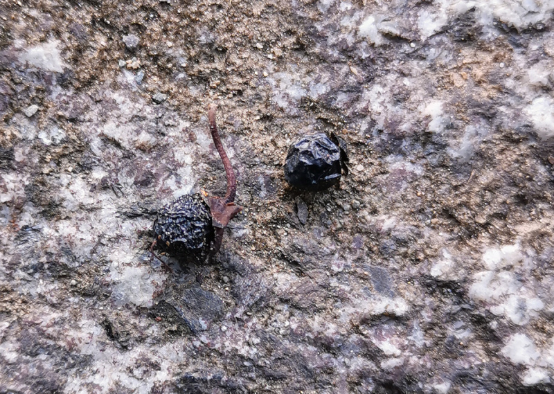 丸くなく少し細長い黒い実がいっぱい落ちていました。