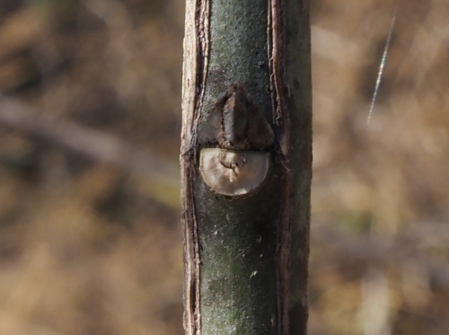 あとは、葉の表裏の近接画像から、鋸歯葉であること、枝や葉柄に褐色の毛があること、葉裏に光沢があることなどを見極めたいところですが、この画像からは、鋸歯があるようには見えません。悩ましいですね。
