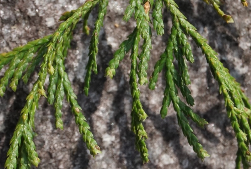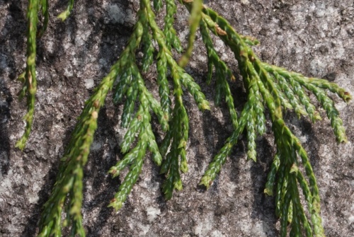 葉裏に白い三角形の気孔帯がありますので、ヒノキ科サワラをご検討ください。