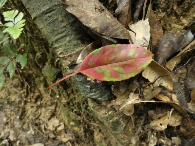 石垣島の山中に紅葉した葉が落ちてました。