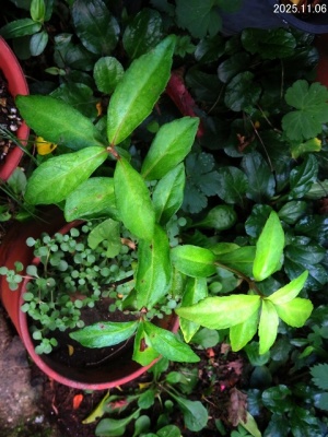 追伸:この植物は突然に鉢の中から出て来たものです。周囲にはアジサイがあります。