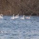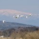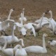 白鳥たちは70羽位 牧草地にいる。阿武隈川と