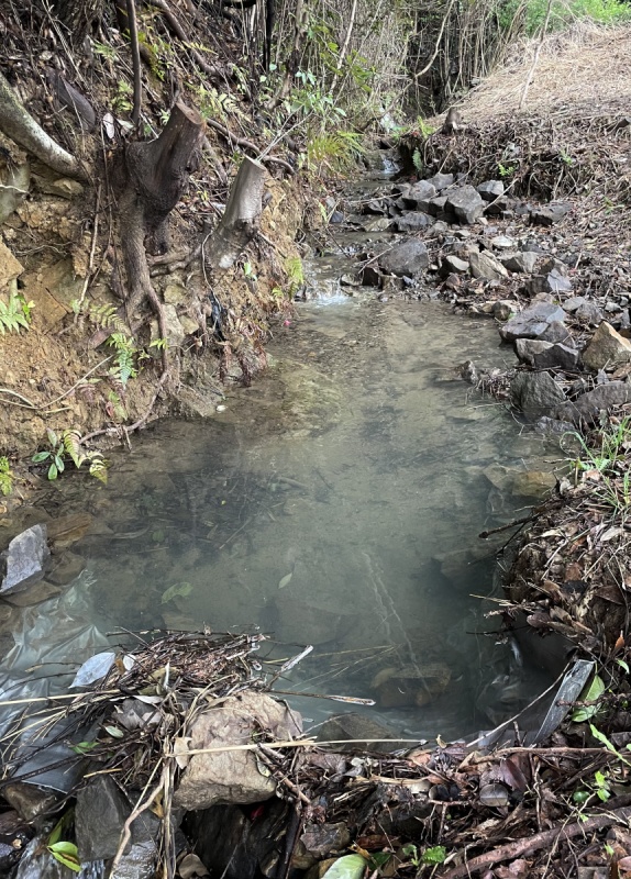 一番奥 木立との境に水路あり
