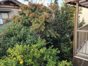 裏のお宅が落ち葉が困ると言っていたが透明のビニールを貼り防御していたと判った