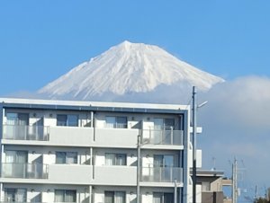 朝は見えなかった富士山 気がつくと雪が昨日より多い 朝はのんびりしてマイナ保険証を取り上げているテレビを見て 皮膚科のお薬を今日貰いに行かなくては と気づく