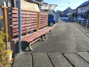 シズテツp→🚶♀️➡️ 道路側にベンチを設置した塀 今日は腰掛けてみました 陽だまりでポカポカ→買い物→3000歩