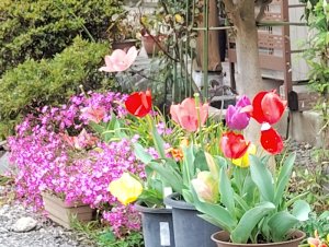 皮膚科処方箋薬局で薬を待つ間に🚶♀️花が多く綺麗な庭のお宅があり写す 肌寒いが歩くと丁度良い薬を頂き内科 空調が効き厚着の人が羨ましい 採血時は半袖で正解と思う 薬局で12錠足りない薬があり後日取りに行く 軽四は駐車するのがとてもラク!