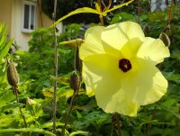 おくらの花、綺麗です 儚さが漂って夏の暑い最中 涼しげに咲いています