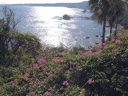 ↑ これ写したのは午後1時頃だったかな…この時間帯めちゃめちゃ強逆光で眩しすぎる海をバックに、南国ムードのブーゲンビリアが咲いてる様子をパチリと〜☆