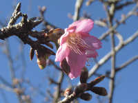 ← 画像は今週の月曜日(1/26) 自宅から一番近い場所に植わっているカワヅザクラで、咲きたての可愛い花を選び写しました(^^♪