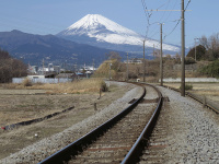 ← これは昨日(1/26)三島市の方まで出かけた時に、伊豆箱根鉄道の線路際から富士山がくっきり見えたのでパチリ〜☆