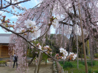 大木の枝垂れ桜のお寺に行ってみましたが、10年くらい前と同じくらいの開花でした。