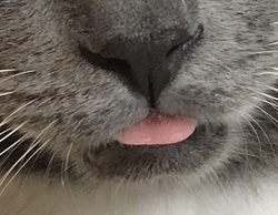 フクはアグレッシブなネコなため、写真を撮ろうとするとズズズィと押し寄せてこうなることがあります。