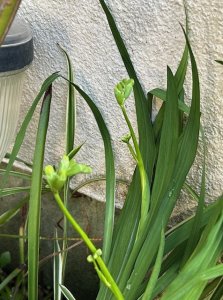 フリージアに花芽が見えないといっていたけれど、やっと1鉢だけ蕾ができました(#^^#)