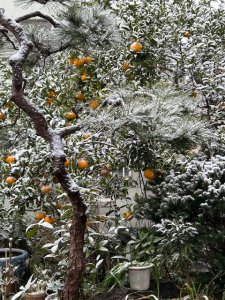 甘夏の葉っぱのところにも積もっていたけど、実のところはあまり積もっていませんでしたよ。