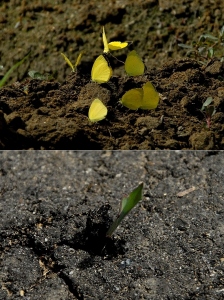 散歩中に畑の中で、黄色いものがヒラヒラするのが目につきました。