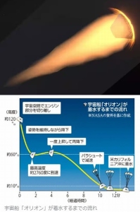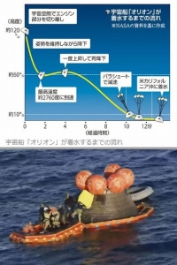 オリオンは同日午前8時53分ごろ、高度約120キロまで降下し、時速約4万キロで大気圏に再突入。同9時過ぎから順次パラシュートを開き、米カリフォルニア州沖の太平洋に着水した。