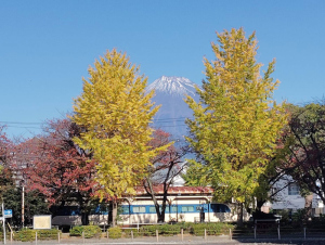 その散歩の時の公園の銀杏の黄葉と富士山です。