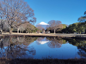 お届けは28日の散歩時、中央公園から見た富士山です。