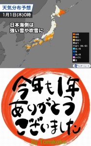 年越しの昨晩から元日にかけて寒気が南下しています。