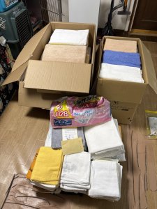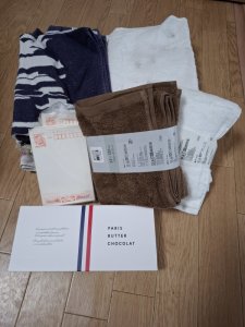 お手紙と共にテレカ、トイレシート、タオルを頂きました。