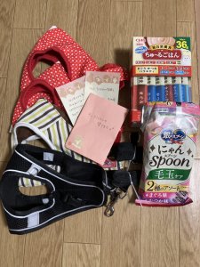 お手紙と共にハーネス・猫用ご飯・ちゅーるを頂きました。