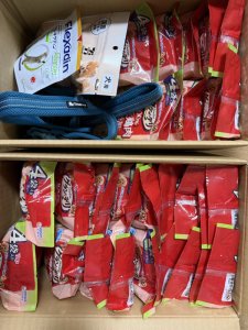 犬用フード、おやつ、ハーネスリードを頂きました。