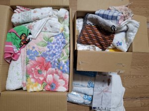 温かいお気持ちありがとうございます。大切に使わせていただきます。お菓子は休憩時にボランティアの皆さん達と一緒に頂きます。