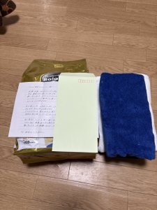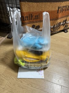 お手紙と共に犬用フード、オムツ、トイレシート、駆虫薬等を頂きました。