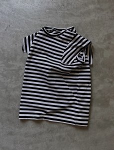 ⚫︎6568 20/1天竺ボーダー ノースリーブプルオーバー \13,200 カラー:サラシ×ブラック、アイボリー×レモン、グリーン×ブラウン サイズ:F 素材:綿100%