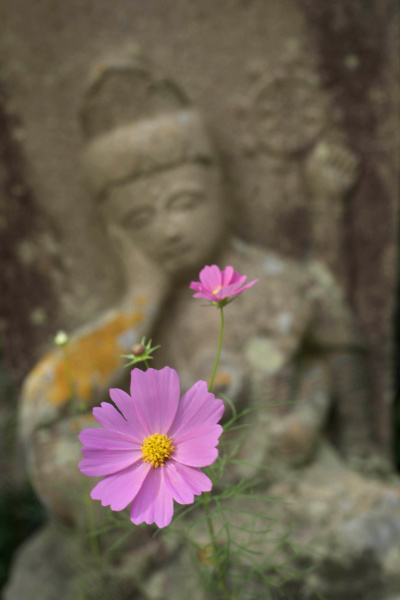 場所:奈良 元興寺石仏をバックに紫の色がさえます。