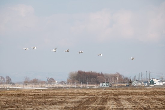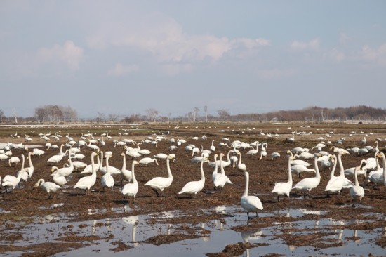 野の花を楽しんでの帰りの当別町の畑で、すごい数の白鳥を見ました。
