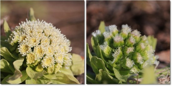 フキノトウの左・雄花、右・雌花です。