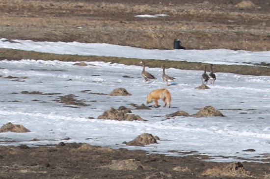 渡り鳥たちはキツネがいても平気なの?とびっくりしました。