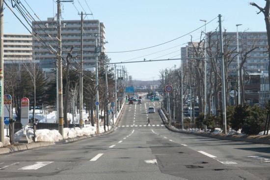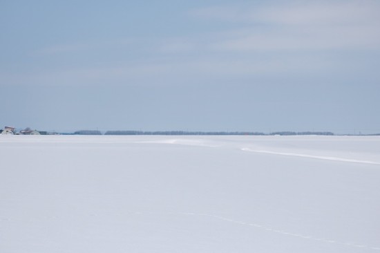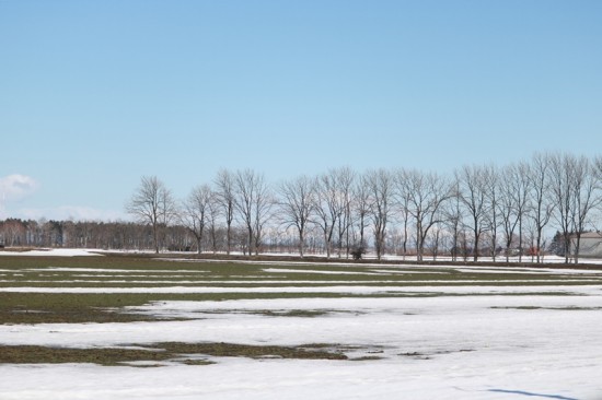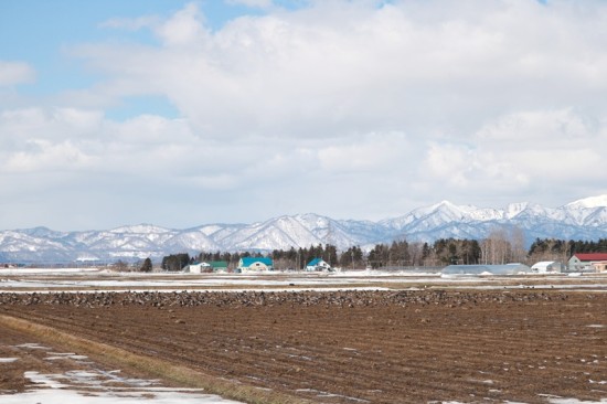 手前の畑は融雪剤が撒いてあるんだろうね(⌒∇⌒)
