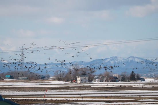 例えば宮島沼というところに集結しますが、今はまだ凍っていて沼開けはまだ先です。