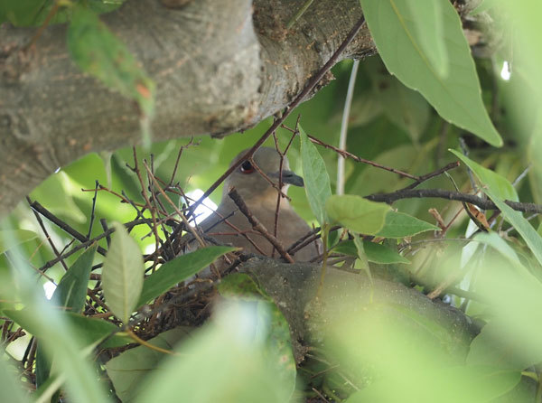 今は、もう居ませんが、先日、我が家の庭木に鳩が巣をつくり抱卵していたようです。